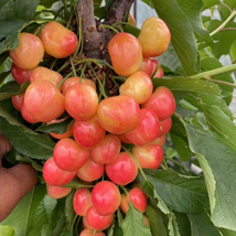 樹姿半開張,萌芽力、成枝力強(qiáng)易成花,豐產(chǎn);果實(shí)心臟形,黃底紅暈,果皮光亮,果柄中長,平均單果重13克;齊早